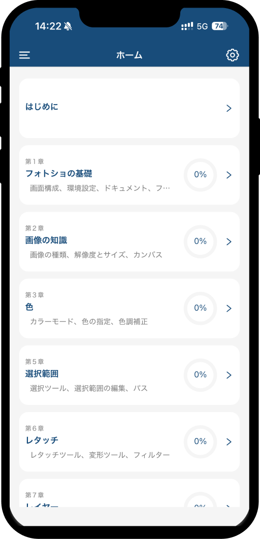 業界初のスマホで学習できるアドビ認定プロフェッショナル(Photoshop)対策アプリです