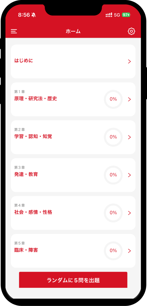 本アプリには効率的に心理学検定 A領域の学習をするために、さまざまな機能が搭載されています